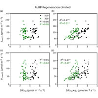 本文利用光和碳反應之間的平衡推導出了葉綠素a熒光發射(ChlF)和光合能力參數關系的理論方程,并就PSII發射的實際總葉綠素熒光與最大羧化速率和最大電子傳遞速率之間的動態關系制定了可檢驗的幾種假設。